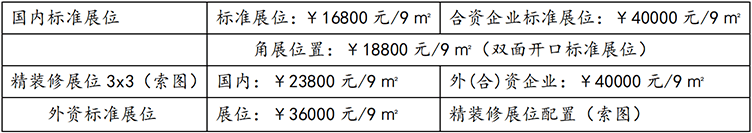 设置装备摆设:展出场地、三面展板(高2.5m)、一块中英文楣板 、一 张洽商桌、二把椅子、地毯、220V电源插座一个、二支射灯。由企业本人邀请,帮力建立现代化财产系统。
