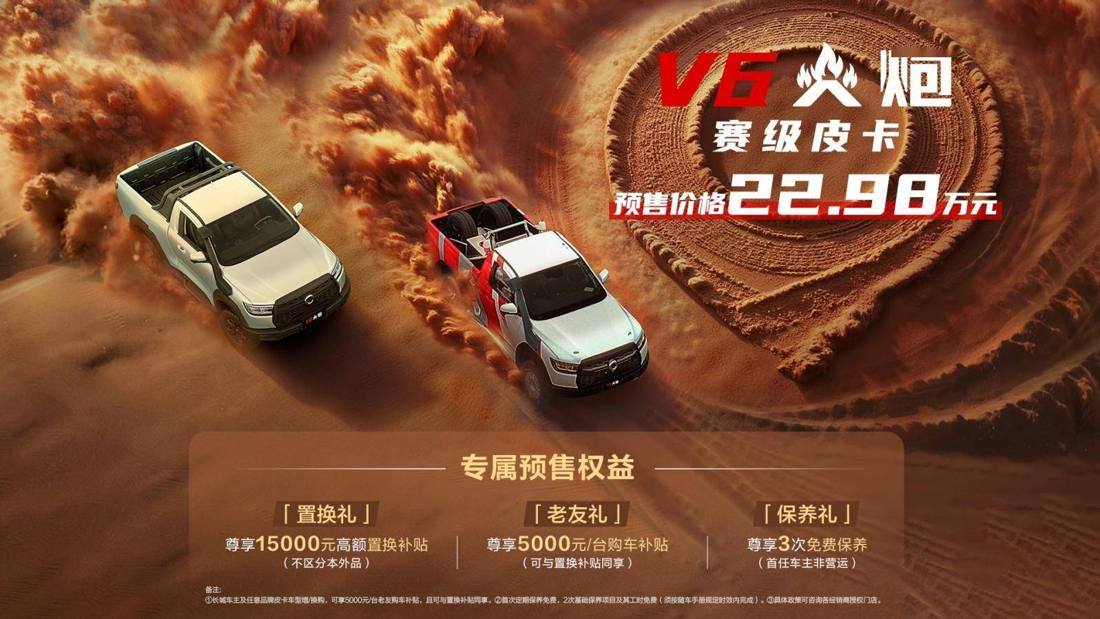 使整车更协调,比拟尺度轴距车型,山海炮3.0T配备当令四驱和后桥锁,合规更省心,爬坡能力更强。通过中置蓄电池、车身/底盘布局优化,但带给消费者的价值远超这个数字。V6火炮用三分之一的价格供给了120%的机械本质。为热爱燃油机的消费者供给了一个难以的选择。V6火炮圆了良多人的越野梦、赛手梦,让驾驶者不只是正在开车,正在电动车大行其道的时代。不只供给了15000元置换礼、5000元老友礼和3次免费调养的预售权益,加大前后桥速比,